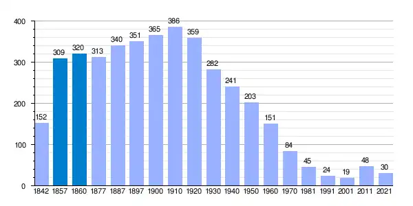 | Gráfica de evolución demográfica de La Hoya[4] entre 1842 y 2021 |