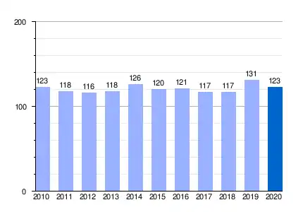 | Gráfica de evolución demográfica de La Huertezuela entre 2010 y 2020 |
