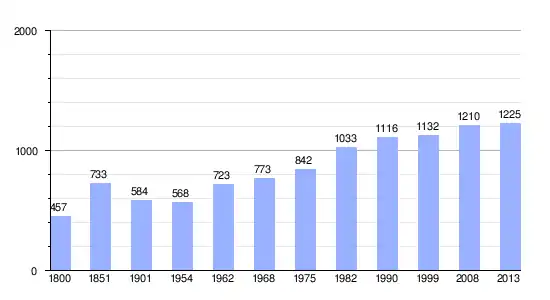 | Gráfica de evolución demográfica de La Jubaudière entre 1800 y 2013 |