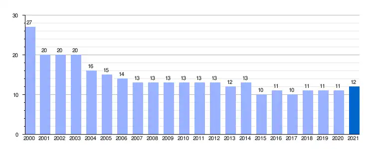 | Gráfica de evolución demográfica de La Lastra entre 2000 y 2021 |