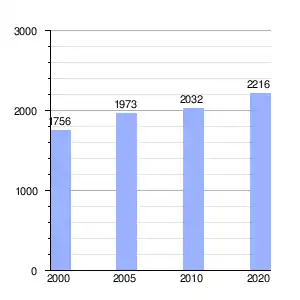 Cuenta con 2216 habitantes lo que representa un incremento promedio de 0.89% anual en el período 2010-2020 sobre la base de los 2032 habitantes registrados en el censo anterior. Ocupa una superficie de 1.501 km², lo que determina al año 2020 una densidad de 1477 hab/km².[7]