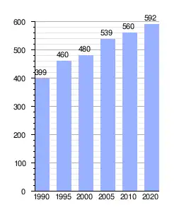 Población de los censos y conteos del Instituto Nacional de Estadística y Geografía (INEGI).[6] |
