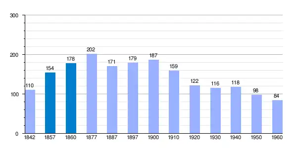 | Gráfica de evolución demográfica de Mallona[4] entre 1842 y 1960 |