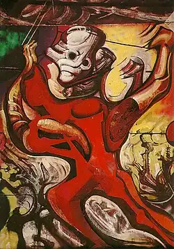 Esta obra se basa en un lienzo de Siqueiros titulado «Nuestra imagen actual», el cual se encuentra en el Museo de Arte Moderno en México.