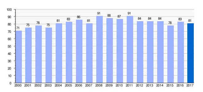 | Gráfica de evolución demográfica de La Mata de Armuña entre 2000 y 2017 |