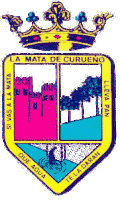 Está surmontado por corona de marqués, que pretende testimoniar el "señorío feudal" del lugar. Dispone de tres campos heráldicos relativos a mudos testigos de historia y de lugar, e incluye una leyenda que recuerda cien fuentes y arroyos. En los dos campos superiores del escudo, a la izquierda, la memoria del castillo almenado con tres torres y, a la derecha, la fila de tres árboles que recuerda el "matón", origen del topónimo de La Mata. En punta la fuente del Mayoralgo, recientemente desaparecida. Y en la bordura, en la parte superior, el nombre del pueblo: LA MATA DE CURUEÑO y, a los lados, la leyenda SI VAS A LA MATA LLEVA PAN QUE AGUA TE LA DARÁN.