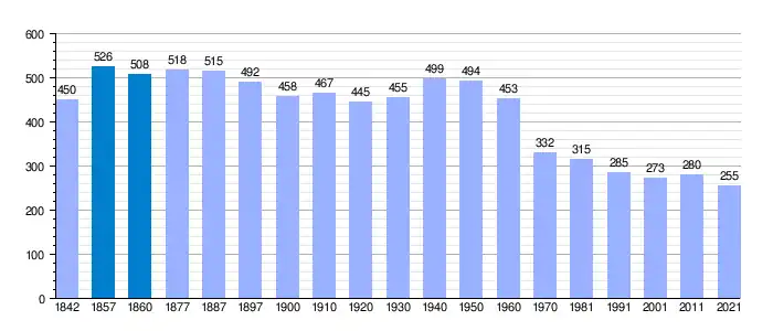 Población de derecho según los censos de población del INE     Población de hecho según los censos de población del INEEn estos censos se denominaba La Mata: 1842 y 1857[6]