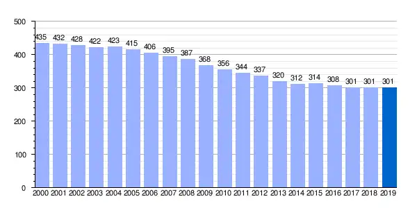 | Gráfica de evolución demográfica de La Matea[1] entre 2000 y 2019 |