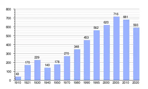 En 2020 registró una población de 593 personas, lo que corresponde al 0.47 % de la población municipal.[1][7] De los cuales 284 son hombres y 309 son mujeres.[1][7]