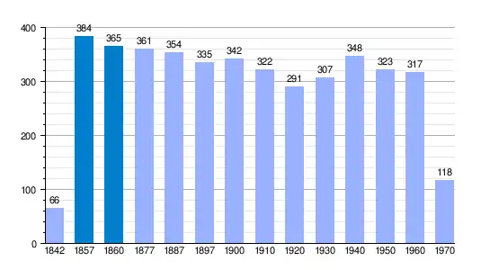 | Gráfica de evolución demográfica de La Molina de Ubierna[1] entre 1842 y 1970 |