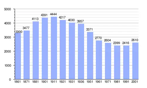 | Gráfica de evolución demográfica de La Morra entre 1861 y 2001 |