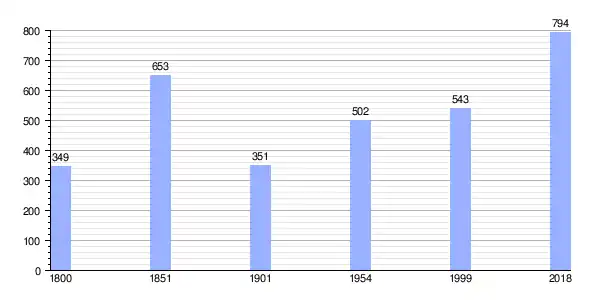 | Gráfica de evolución demográfica de La Motte-de-Galaure entre 1800 y 2018 |