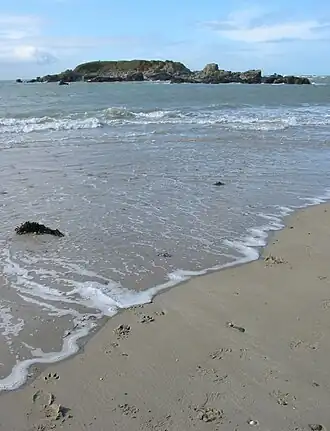 Está situada cerca de la orilla del mar y es accesible en marea baja, pero los visitantes de la isla viajan cuidado para no quedar aislados por la marea. La isla tiene una superficie cubierta de hierba y con la presencia de barro rodeado de rocas. En los últimos tiempos se han hecho esfuerzos para preservar la isla con la construcción de muros.