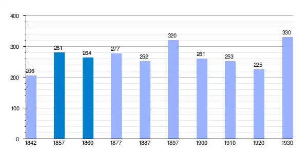 | Gráfica de evolución demográfica de La Muedra[3] entre 1842 y 1930 |