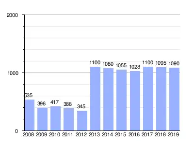 | Gráfica de evolución demográfica de La Nava[3] entre 1842 y 2021 |