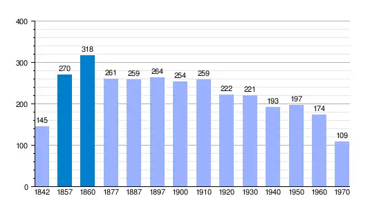 | Gráfica de evolución demográfica de La Nuez de Abajo[2] entre 1842 y 1970 |