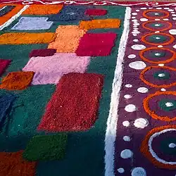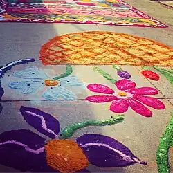 Este día, niños, jóvenes y adultos engalanan las calles de la ciudad, con verdaderas obras de arte hechas de aserrín, que van formando enormes tapetes llenos de color y que sin duda dejan sin palabras a cada persona que visita Uriangato en esta fecha. En su mayoría con temas religiosos, pues la fiesta conmemora al patrono de la ciudad San Miguel arcángel, estos bellos tapetes marcan el paso de la procesión en la que los Uriangatenses siguen el recorrido del arcángel San Miguel en una procesión por la ciudad. Así entre calles adornadas y esquinas en las que se pueden ver altares dedicados al patrono de la ciudad.