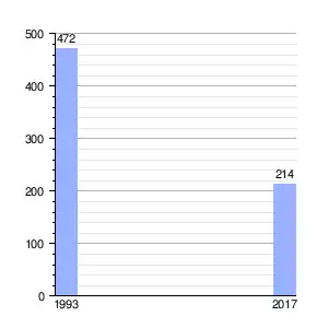 | Gráfica de evolución demográfica de La Ollería entre 1993 y 2017 |