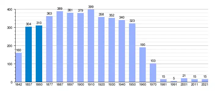 | Gráfica de evolución demográfica de La Olmeda de Jadraque[2] entre 1842 y 2021 |