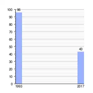 | Gráfica de evolución demográfica de La Palma entre 1993 y 2017 |