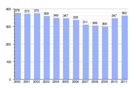 Población (2000-2011) según el nomenclátor de unidades poblacionales del INE.[9] |