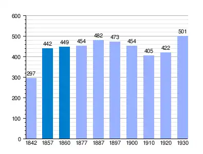 | Gráfica de evolución demográfica de Parra[7] entre 1842 y 1930 |