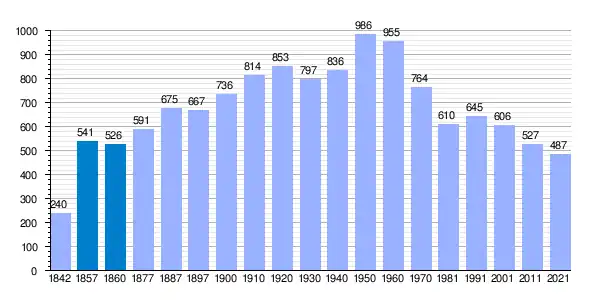 | Gráfica de evolución demográfica de La Parrilla[5] entre 1842 y 2021 |