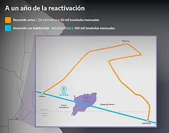 En septiembre de 2019, se anunciaron las obras para rehabilitar el tráfico de trenes en la línea San Martín. Las mismas consistieron en la reparación del pedraplén y el tendido de vías.[6] Estas obras permitirían reanudar no sólo la circulación de trenes de carga, sino también el servicio de pasajeros hacia la ciudad de Rufino.[7] Finalmente, las obras fueron concluidas en octubre de 2021.[8]