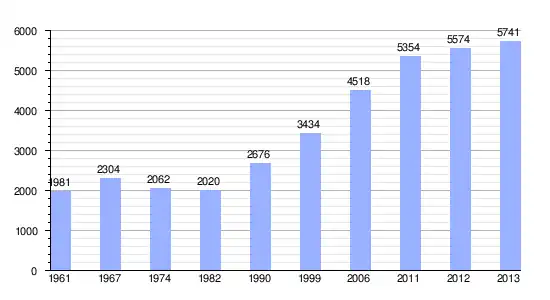 | Gráfica de evolución demográfica de La Plaine-des-Palmistes entre 1961 y 2013 |