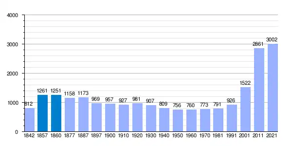 | Gráfica de evolución demográfica de Puebla de Montornés[4] entre 1842 y 2021 |