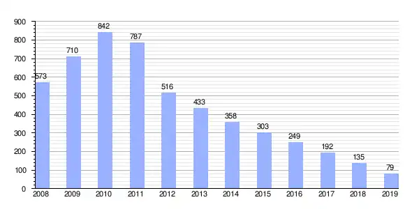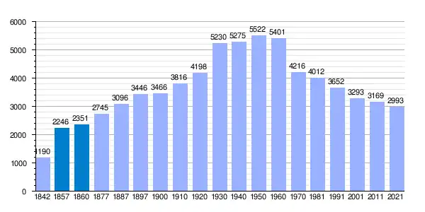 | Gráfica de evolución demográfica de La Puebla de los Infantes[2] entre 1842 y 2021 |