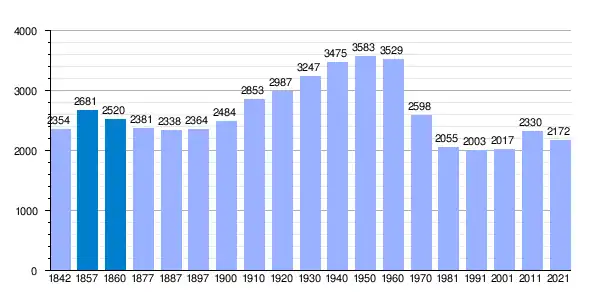 | Gráfica de evolución demográfica de La Pueblanueva[2] entre 1842 y 2021 |