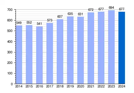 | Gráfica de evolución demográfica de La Restinga entre 2014 y 2024 |