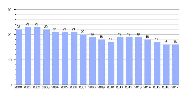 | Gráfica de evolución demográfica de La Riba[2] entre 2000 y 2017 |