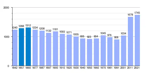 | Gráfica de evolución demográfica de La Riera de Gaià[3] entre 1842 y 2021 |