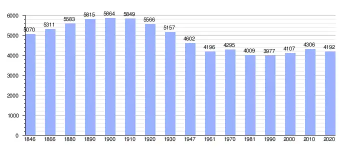 Todos los datos históricos relativos al actual municipio, el siguiente gráfico refleja su evolución demográfica, incluyendo municipios después de efectuada la fusión el 1 de enero de 1977.