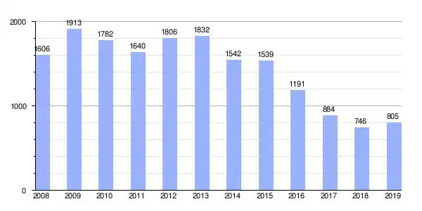 | Gráfica de evolución demográfica de La Roda de Andalucía[3] entre 1842 y 2021 |