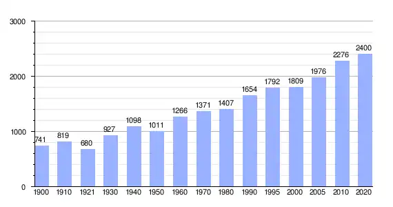 En 2020 registró una población de 2400 personas, lo que corresponde al 5.06 % de la población municipal.[1][7] De los cuales 1159 son hombres y 1241 son mujeres.[1][7]