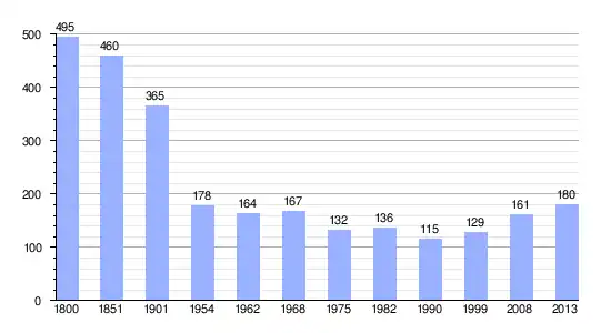 Los datos demográficos contemplados en este gráfico de la comuna de La Salle-Prunet[4] se han cogido de 1800 a 1999 de la página francesa EHESS/Cassini, y los demás datos de la página del INSEE.[5]
