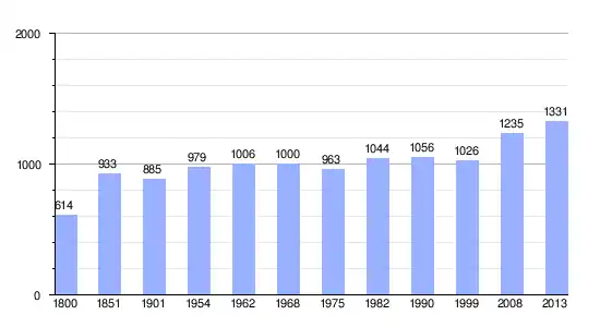 Los datos demográficos contemplados en este gráfico de la comuna de La Salle-et-Chapelle-Aubry[4] se han cogido de 1800 a 1999 de la página francesa EHESS/Cassini, y los demás datos de la página del INSEE.[5]