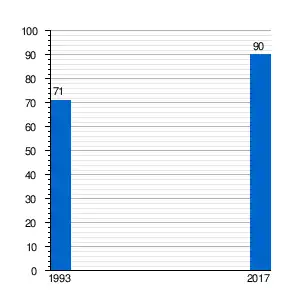 | Gráfica de evolución demográfica de La Segunda entre 1993 y 2017 |