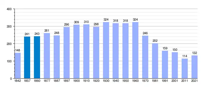 Gráfica de evolución demográfica de La Serrada[3]​ entre 1842 y 2021
