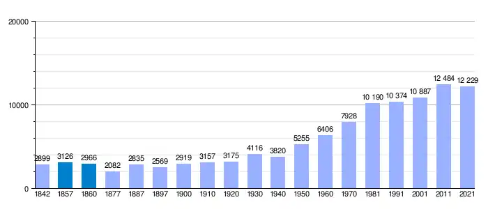 Gráfica de evolución demográfica de La Seu d'Urgell[27]​ entre 1842 y 2021