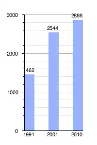 | Variación intercensal | + 13 % (2001 - 2010) | |