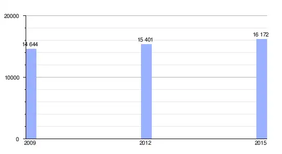 | Gráfica de evolución demográfica de La Vallée de Jacmel entre 2009 y 2015 |