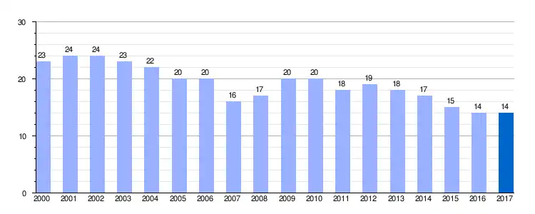 | Gráfica de evolución demográfica de La Velilla entre 2000 y 2017 |