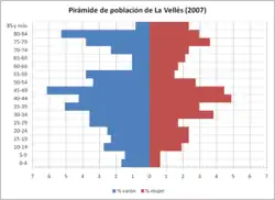 | Gráfica de evolución demográfica de La Vellés[5] entre 1842 y 2021 |
