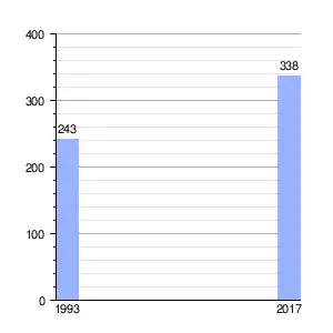 | Gráfica de evolución demográfica de La Victoria entre 1993 y 2017 |