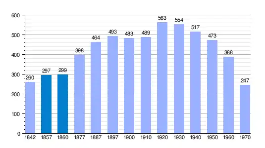 | Gráfica de evolución demográfica de La Zarza[4] entre 1842 y 1970 |