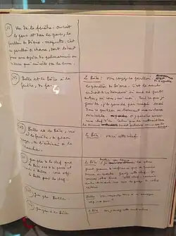 - Reproducción del texto, con fotogramas de la película, secuencias y fotos de páginas del mecanoscrito del guion. (en francés)